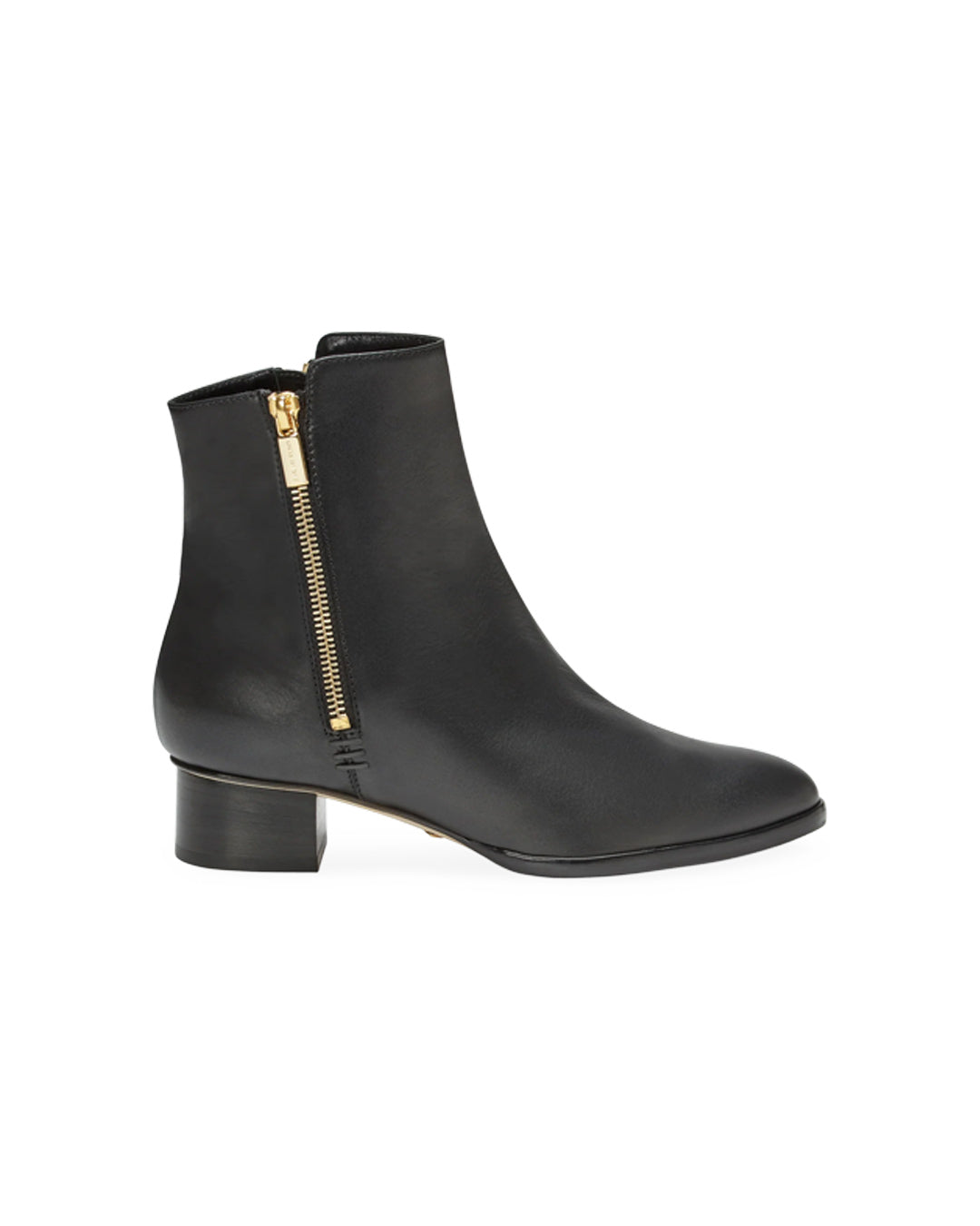 The ultimate desk-to-dinner boot. Sleek black calf transitions seamlessly from polished daytime looks to elevated evening style. Pair it with sharp lines for the office, then swap in a leather pant for night, its low heel keeps you chic and comfortable through it all.