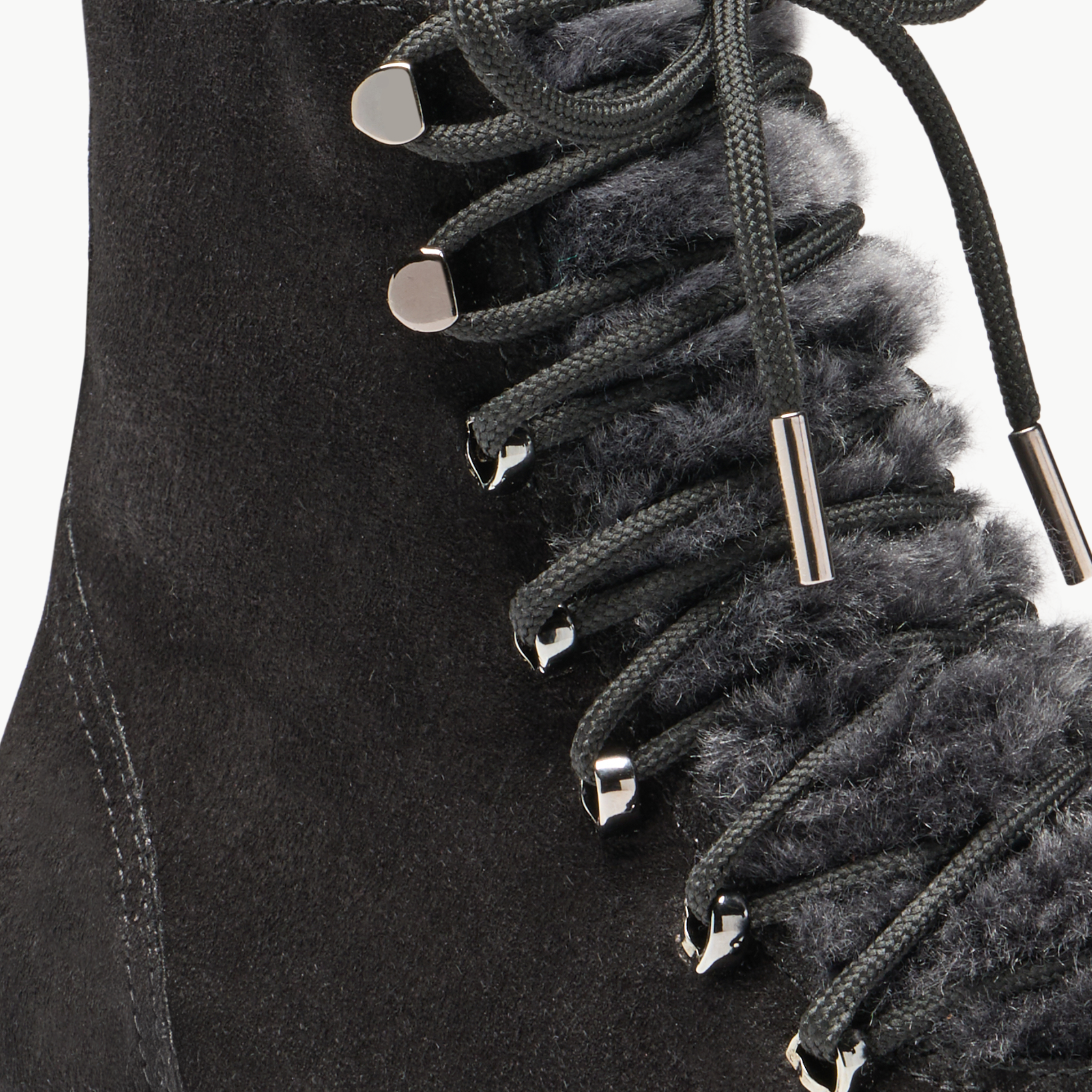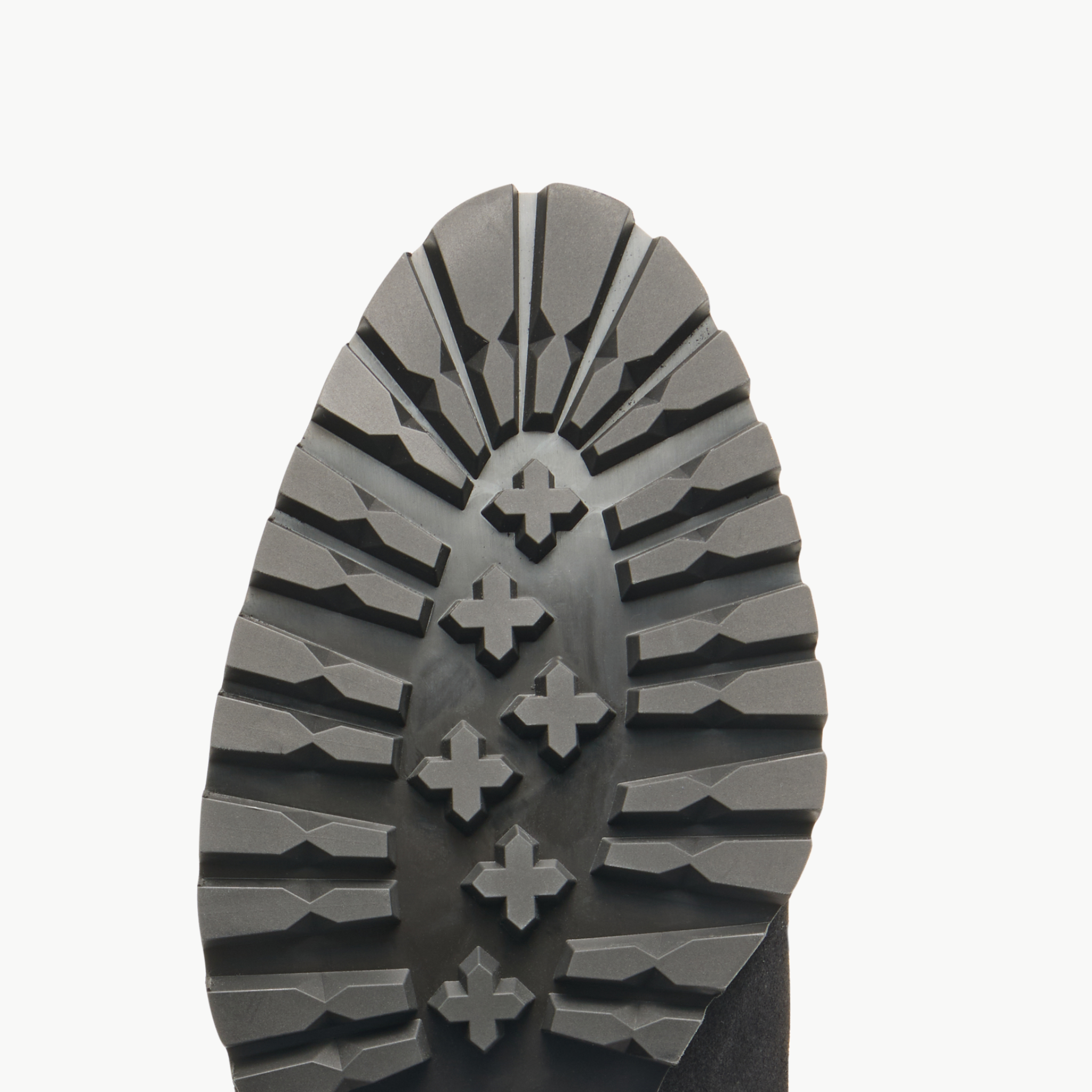 Fully lined in plush shearling (right down to the tongue), it delivers instant warmth without the bulk. A water-resistant crosta upper and full rubber tread ensure confidence in all-weather conditions, while an interior zipper keeps the fit effortless. Decorative laces add a polished finish without disrupting the streamlined silhouette.