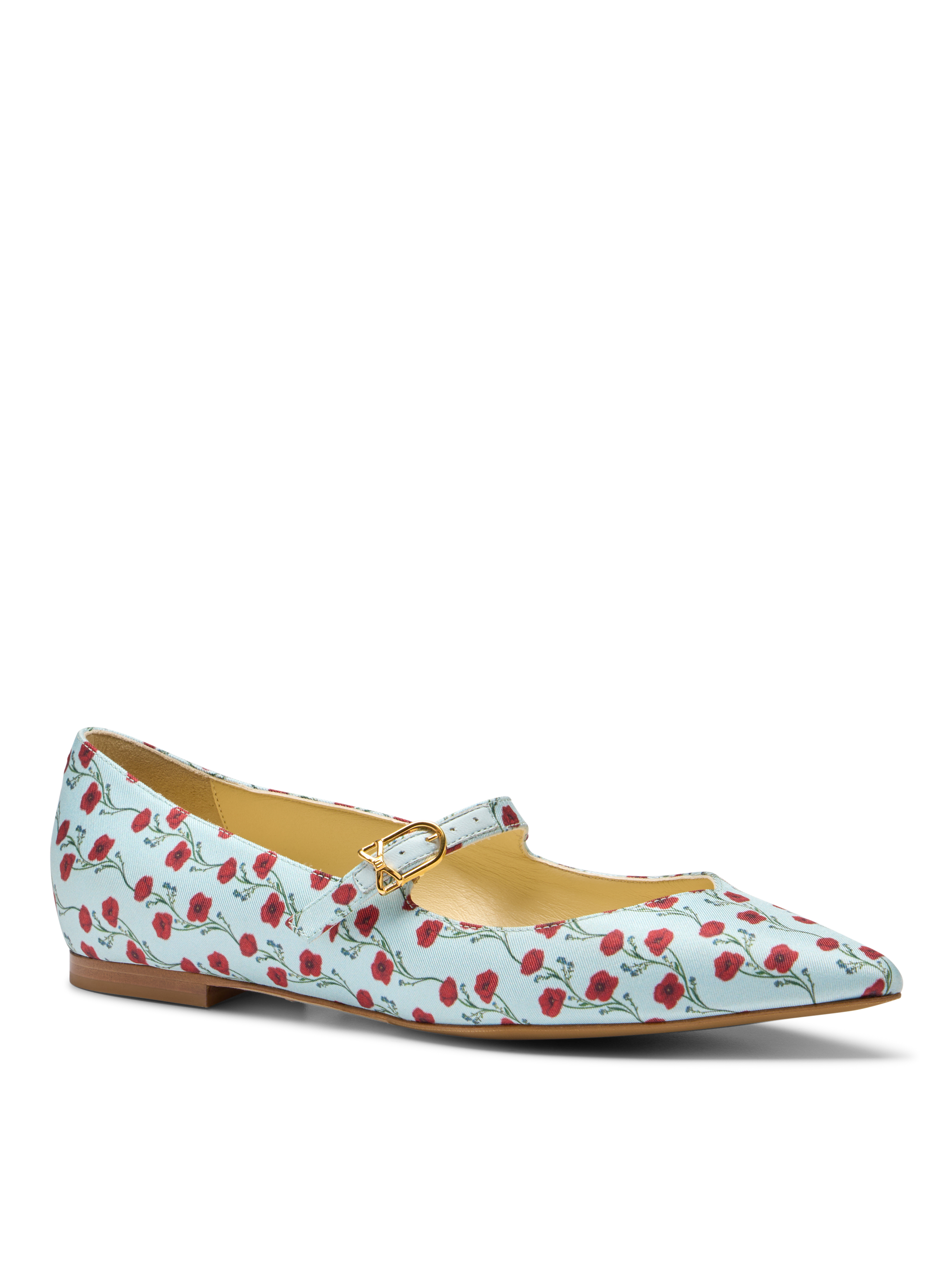 The all-new Runi brings Sarah's original artistry to life with hand-painted Poppies and Forget-Me-Nots, inspired by her spring garden. This elegant Mary Jane features luxurious silk crafted in Como, Italy, and showcases bespoke artwork, making it a timeless and truly wearable work of art.