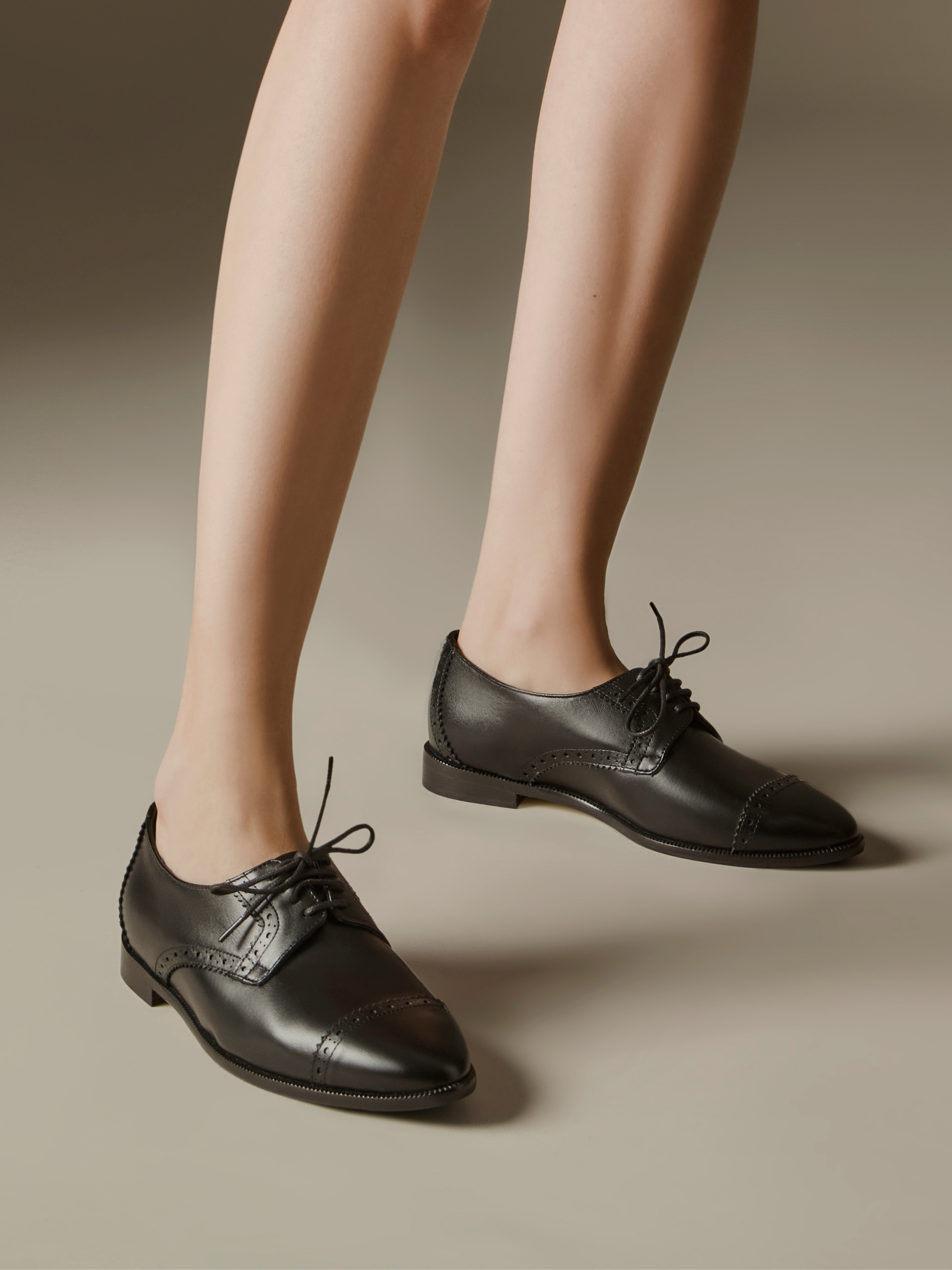 Exclusively part of the Sarah Flint x Mary Orton collaboration, this Derby draws inspiration from the refined craftsmanship of vintage luggage and the intricate woodwork of grand train interiors. Polished yet practical, it features delicate brogue detailing that adds a subtle feminine touch. Perfect for navigating bustling stations or cobblestone streets, it blends timeless design with everyday sophistication.